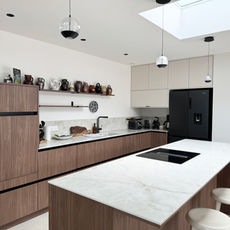 Au rez-de-chaussée vous trouvez une très grande pièce de vie avec une belle cuisine aménagée et équipée pour préparer de bons repas autour du grand îlot convivial, avec bien sûr un lave-vaisselle.